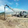 Ямобур представляет собой шнек, на нижнем конце которого размещены режущие лопасти и коническая направляющая. При вращении шнека грунт разрыхляется режущим инструментом и поднимается на поверхность по спиральным направляющим. Мы применяем оборудование для бурения под сваи на базе автомобилей повышенной проходимости. В состав оборудования входят ямобур и телескопическая стрела, работающая от гидропривода.